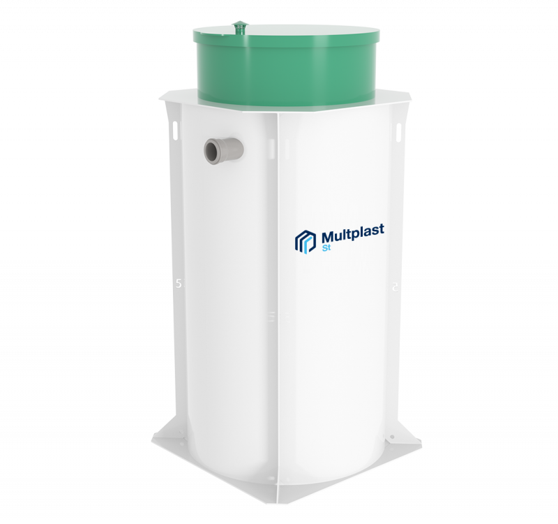 Станция глубокой очистки Мультпласт СТ изготовлена из листового европейского полипропилена в вертикальном круглом корпусе, что позволяет значительно экономить пространство на участке.  Она не боится перепадов напряжения и его можно устанавливать в любой тип грунта, а отсутствие быстрозасоряемых аэролифтов делает его по настоящему надёжной и удобной станцией для дома.
