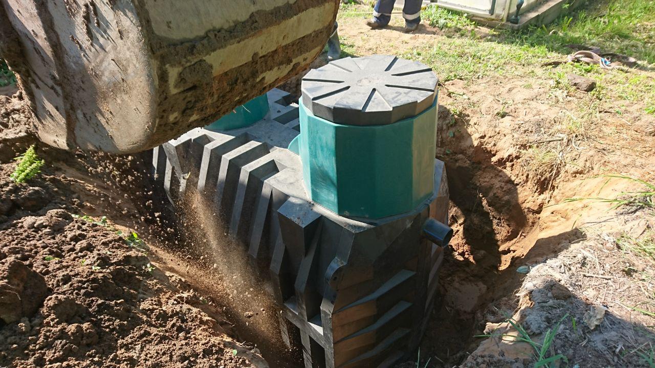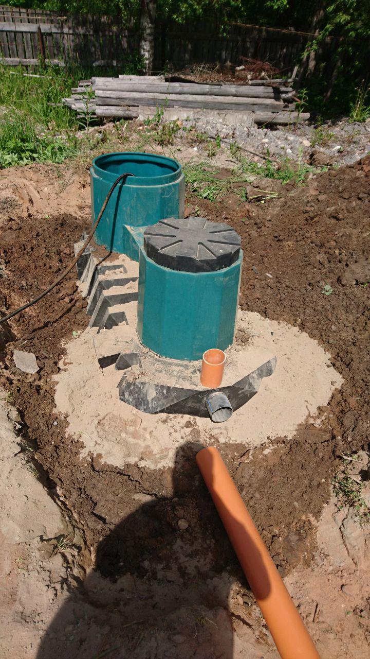 Доставили септик, выкопали котлован. Сделали песчаную подушку. Смонтировали септик.